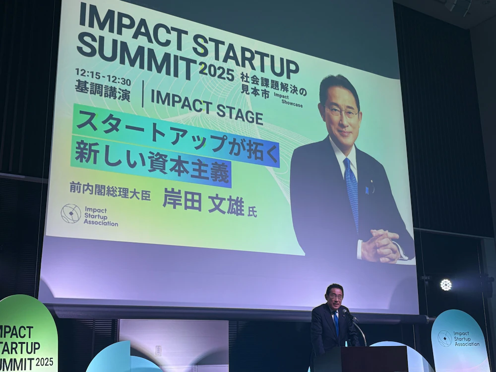 基調講演には、前内閣総理大臣の岸田文雄氏が登壇。インパクトスタートアップを核とした新しい資本主義の展望について、自らの政策的取り組みを交えて語った。