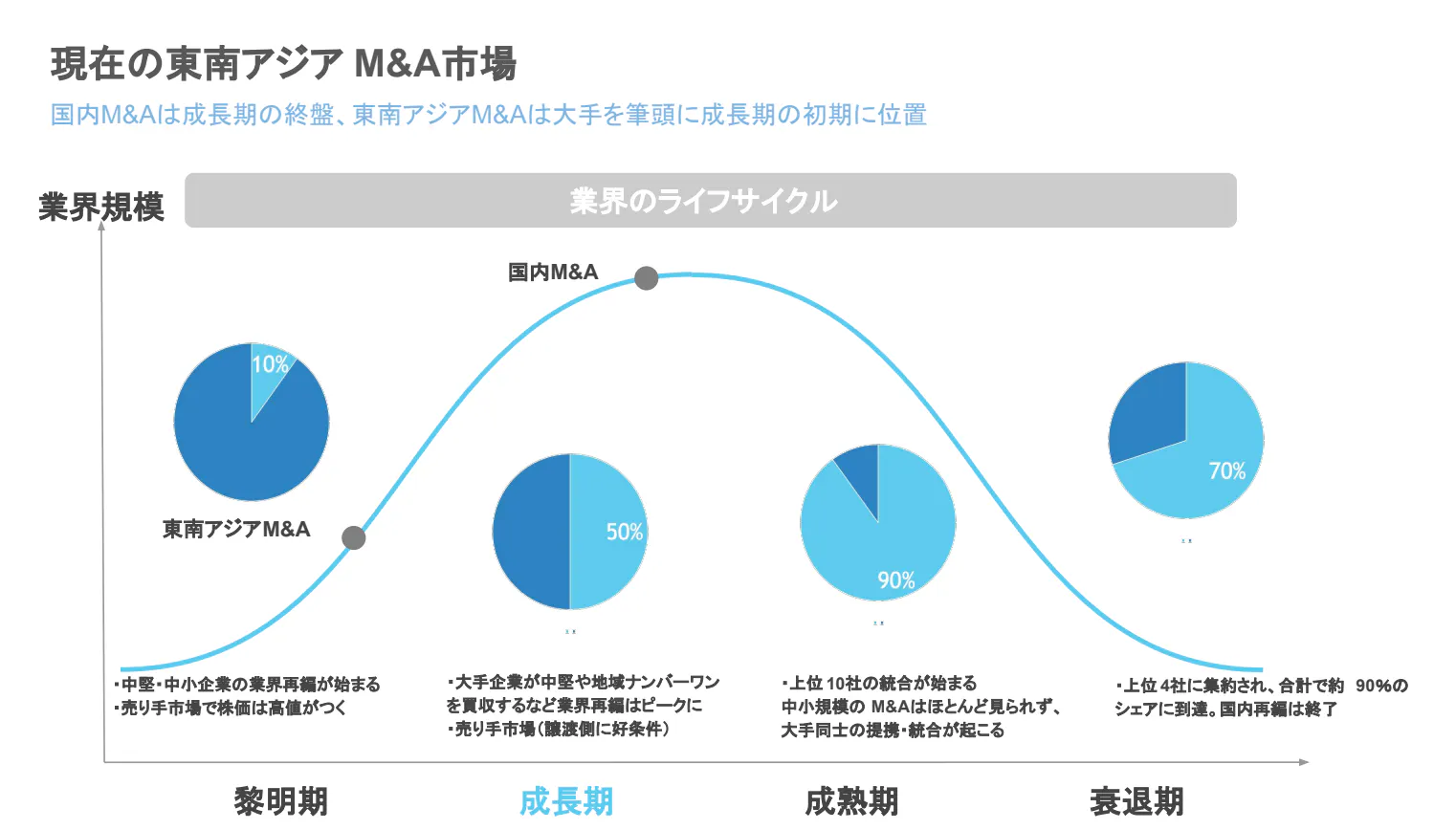 「東南アジアのM&A市場は、日本の30年前と同じ状況にある。日本のM&Aが成長期から成熟期に移行しつつある今、東南アジアはまさにこれから成長期に入っていくフェーズだ」と國井氏は述べ、この市場に早期参入することでインフラとしての地位を確立したい考えを示す。