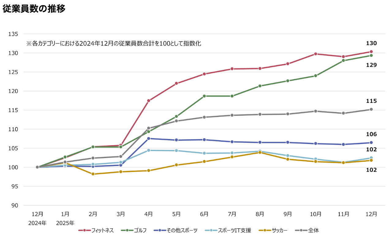 株式会社ケップルでは、スタートアップの動向を把握するうえで、資金調達と同様に重要な指標として「従業員数」に注目。2024年12月~2025年12月の国内スタートアップの従業員数を集計し、スタートアップ動向レポート「従業員数から読み解く国内スタートアップの現在地 2025」としてまとめた。今回は、レポートの中からスポーツセクターの従業員数推移や市場動向に関する解説を紹介する。