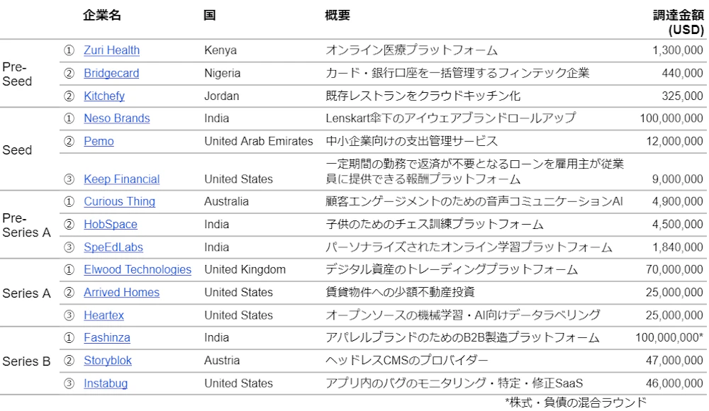 ラウンド別の主要案件は下記のとおりです。