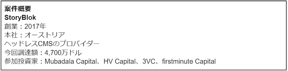 ヘッドレスCMSを手がける企業はグローバルに多数存在しており、昨年7月に1.75億ドルのシリーズFラウンドでユニコーンクラブ入りしたContentful(評価額30億ドル)などが代表格として挙げられます。