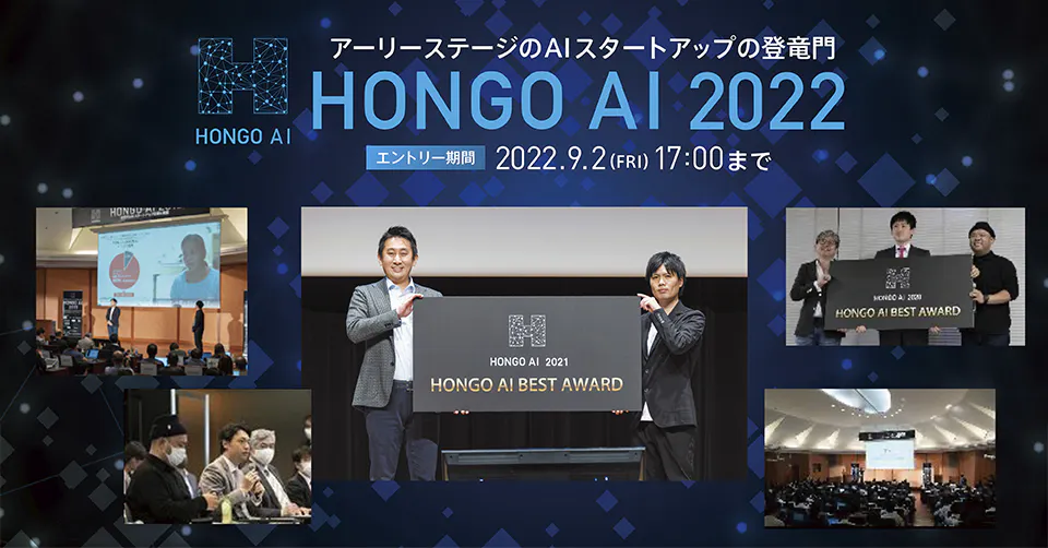 なお、「HONGO AI 2022」は、現在Web応募を受け付けている。応募締め切りは9月2日(金)。事前選考で選ばれた10〜15社が、2022年12月7日(水)に予定されている最終選考会に臨むこととなる。