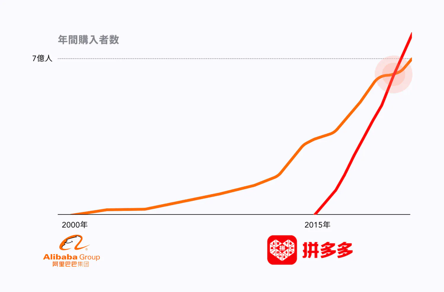 単一事業者のプラットフォームとして爆発的な成長を遂げた拼多多。私が上海をベースに仕事をしていた2017年当時は、拼多多を知る人はほとんどいませんでした。それが2020年には、年間アクティブユーザー数で、中国の圧倒的王者だったAlibabaを抜いたのです。