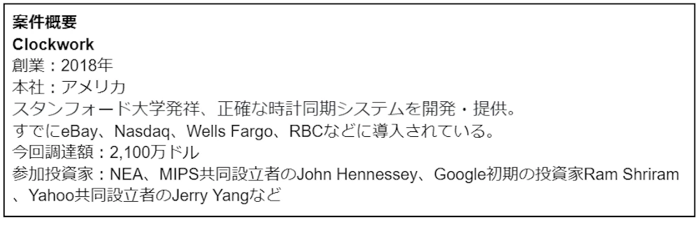 2番目はスタンフォード大学で行われた基礎研究に基づき、クラウドベースで高精度な時計の同期を可能にするClockworkです。正確な時計同期は電子取引、モバイルバンキング、オンラインゲームからロギング/トレースシステム、IoTインフラに必要とされます。従来の分散システムのアーキテクチャは、正確な時計がないため、クロックレス設計と呼ばれ、イベントの順序付け、ステートマシンの複製、フォールトトレランス、スナップショット、一貫性といった基本的な動作が極めて困難でしたが、これらを再定義するシステムとなります。Clockworkは今回の資金調達と併せて、クラウド、オンプレミス、ハイブリッド環境における遅延を強力かつきめ細かく検知する「Latency Sensei」を発売しています。