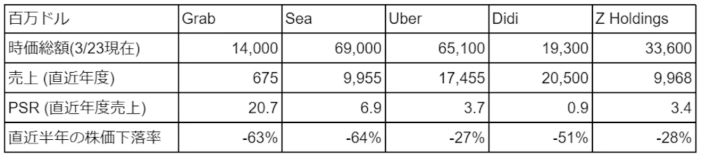上記5社の中では、GrabとSea(ECのShopee運営)がGoToの直接の競合、UberとDidiがライドシェアにおける類似企業である。日本では、Z HoldingsがGoToに一番近いと思われる。Z Holdingsは、ECではYahooとZozo、フードデリバリーでは出前館、決済ではPaypayに出資もしくは保有している。これまで、Z Holdingsは、経営陣の執行能力やコングロマリットなどによるディスカウントが付与されてきたが(上記5社のPSRではDidiに次いで低い)、GoToのIPO成功によって、Z Holdingsの評価が見直される可能性もありそうだ。