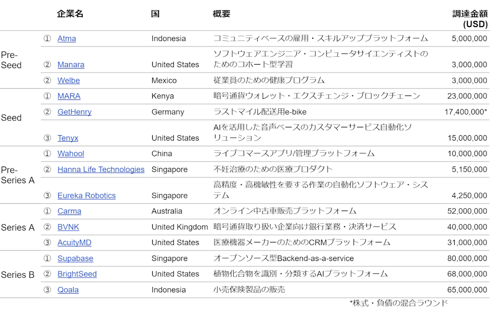 ラウンド別の主要案件は下記のとおりです。