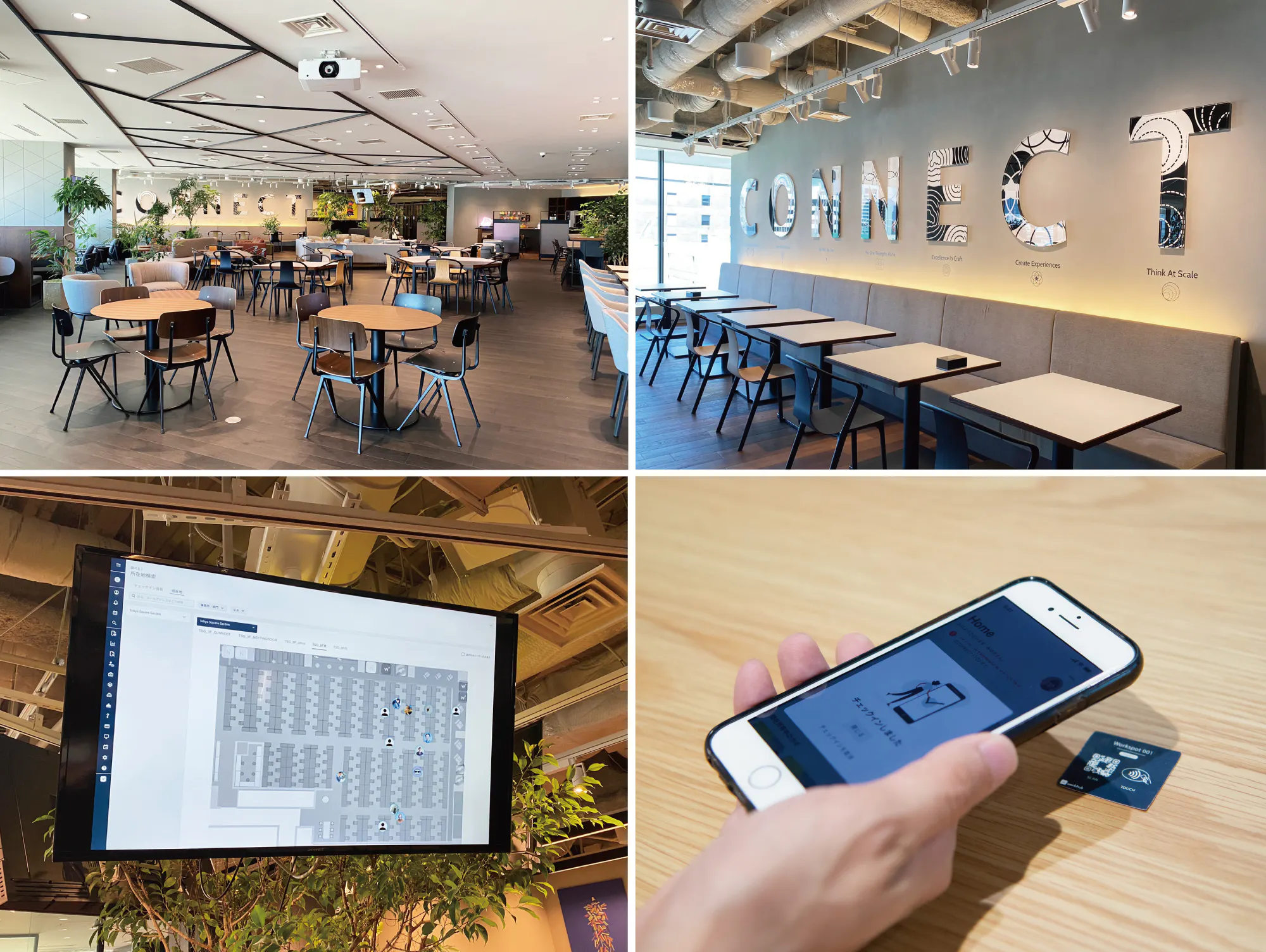 (※)人と仕事の間の分断を「つなげる」ことで解消するコネクトプラットフォーム。デジタルキーでの解錠を可能にするスマートロックや、無人受付、会議室予約やログ管理など、ワークスペースでのDX化を促進し、シームレスな環境を作るソリューション。