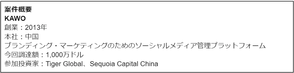 シリーズAで1,000万ドルを調達したのは中国のKAWO(科握)、米国のAva、Heardと3社ありました。今回はブランディング・マーケティングのためのソーシャルメディア管理プラットフォームであるKAWOを取り上げます。