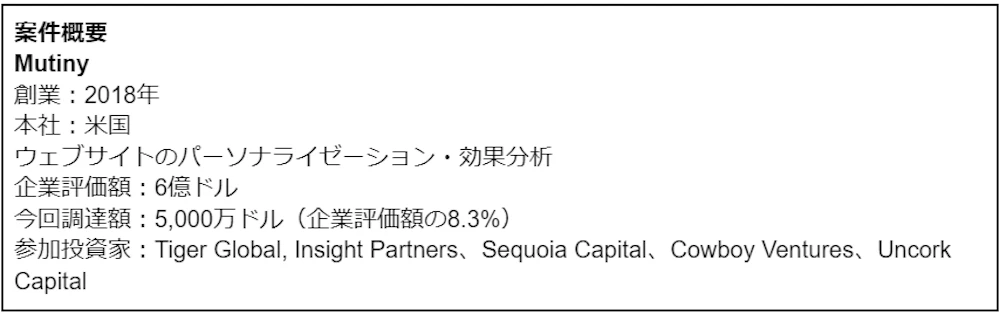 本稿で紹介するシリーズBの調達を行ったMutinyもパーソナライゼーションサービスを提供しています。