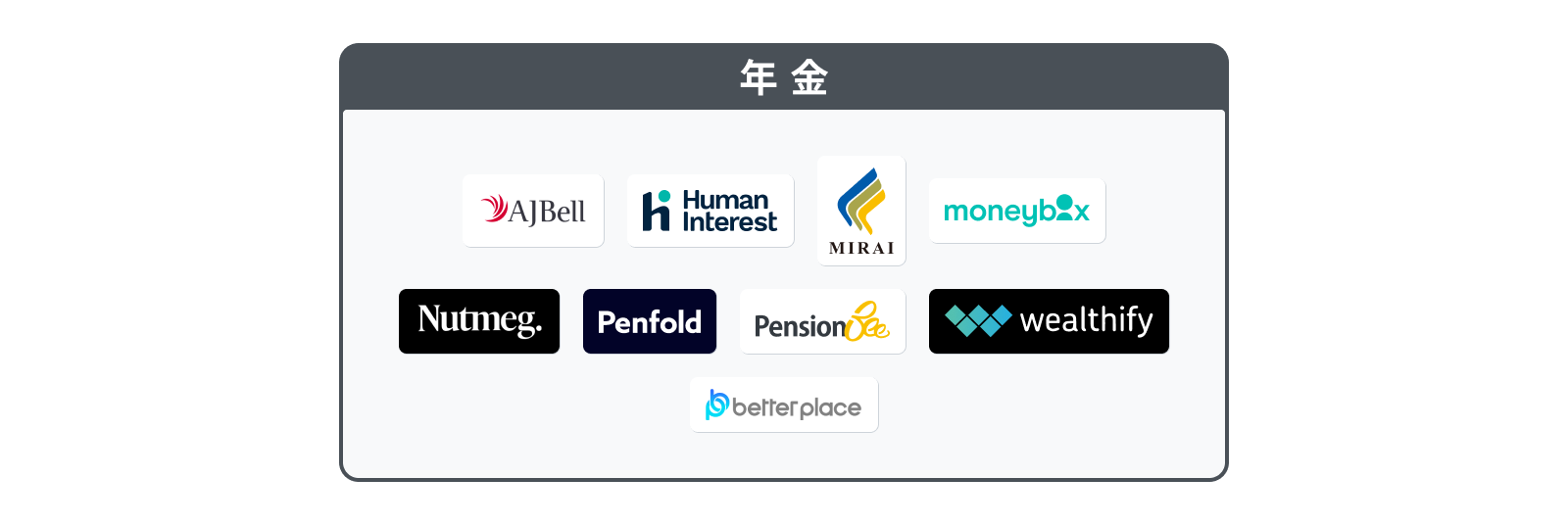 海外では、個人が年金を効率的に把握・運用するサービスが誕生しており、特に英国で多くの企業が存在している。例えば、英国発国発のPenfoldの公的年金と個人年金や貯蓄などを一か所にまとめて管理し、退職後の資産形成に役立てるサービスや年金のデジタル化を推進し、アプリで効率的に管理できる仕組みを構築している上場企業のPensionbeeなどが挙げられる。国内では、未来貯金が確定拠出年金の運用支援サービス「みらいナビ」の運営を行っている。この他には、福祉医療業界向け確定給付企業年金を運営するベター・プレイスを挙げている。