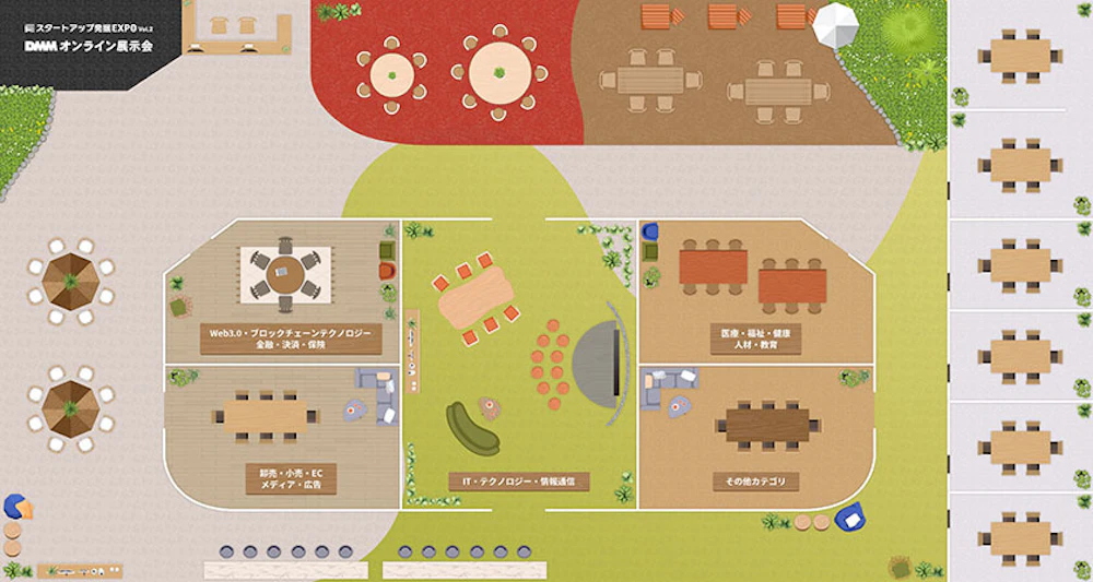 イベントには、Web3.0、ITテクノロジー、フィンテック、ヘルステック、エネルギーテックなど、さまざまな技術やサービスを持つスタートアップ企業328社が参加。オンライン上に各社のブースが出展され、来場者は興味のある企業にチャット形式で問い合わせをしたり、会期中にミーティングを実施した。また、2日目の夕方には、oVice を利用したオンラインネットワーキング会場が用意され、参加者同士の交流も行われた。